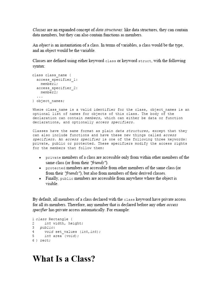 Classes are an expanded concept of data structures: like data structures, they can contain