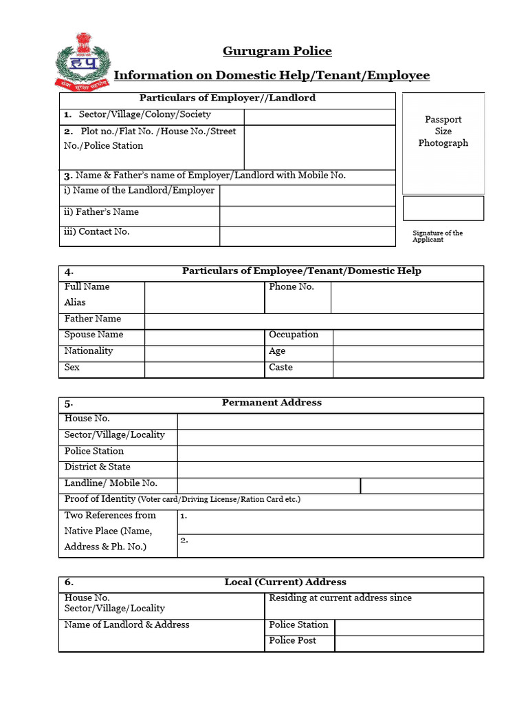 4. Particulars of Employee/Tenant/Domestic Help