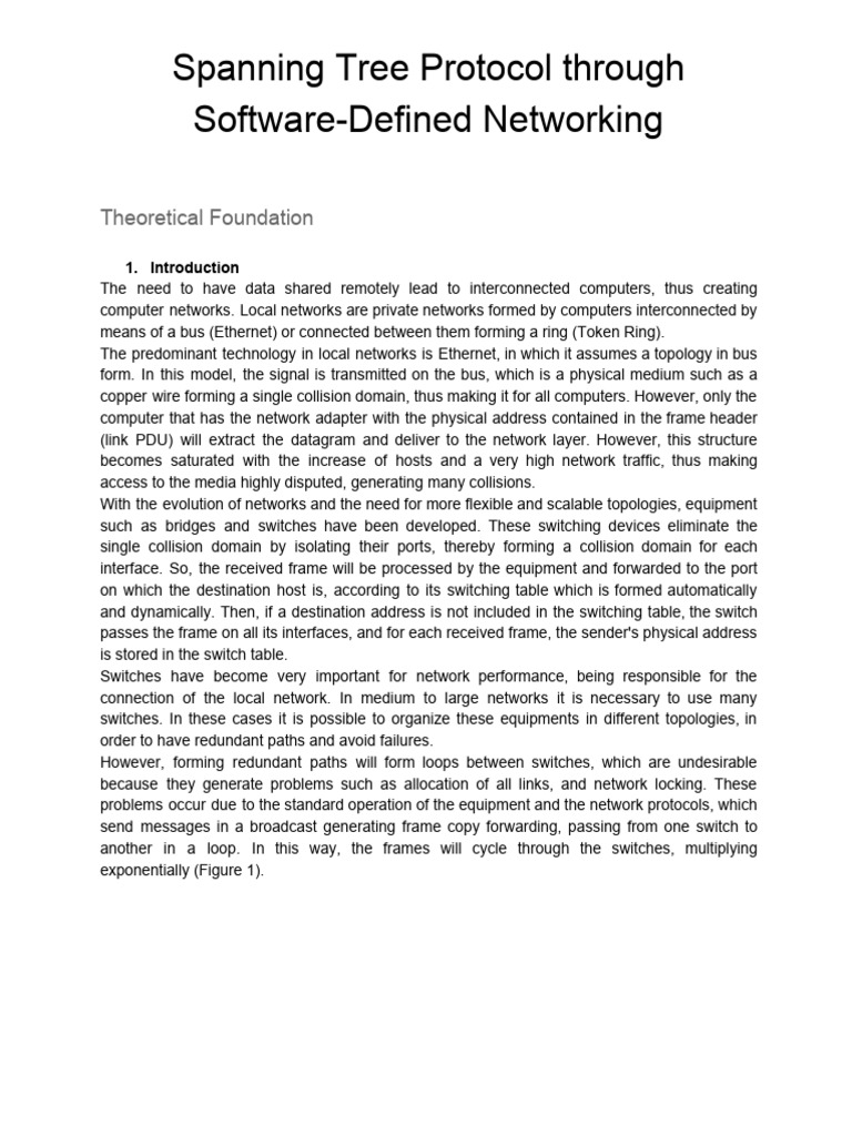 avoiding loops (Figure 2). For this, the STP protocol sends BPDUs (Bridge PDUs) between the