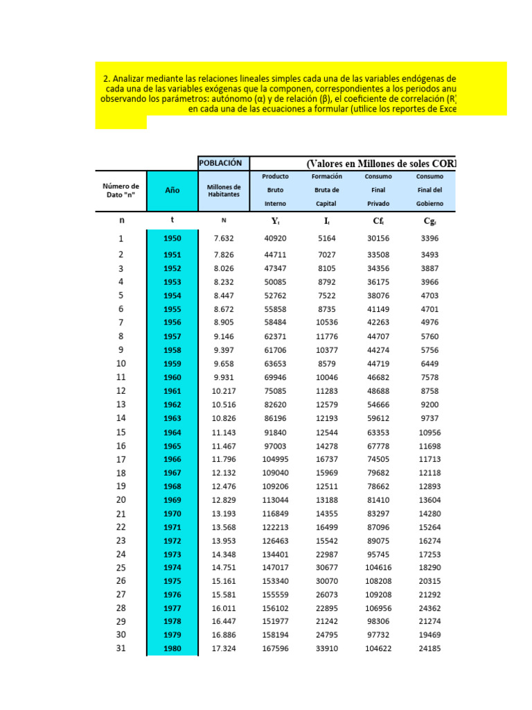 Analizar mediante las relaciones lineales simples cada una de las variables endógenas de los modelos de com