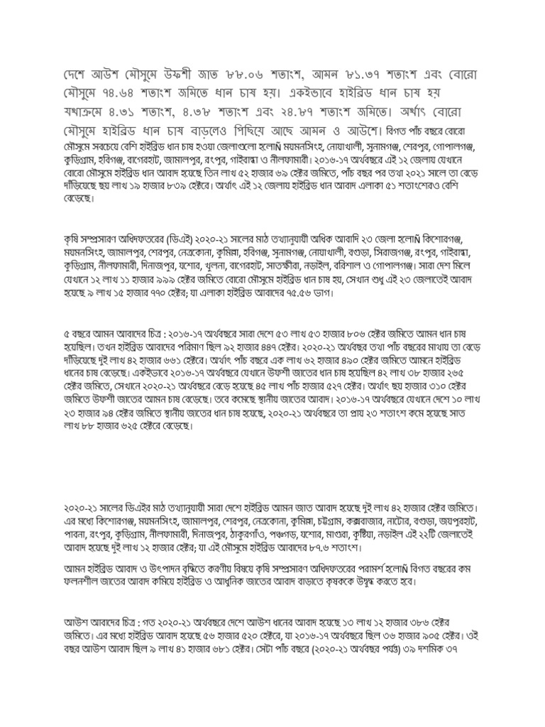 শতাংশ বেড়েছে। একই সময়ে হাইব্রিড আবাদ এলাকা ৫৩ দশমিক ১৫ শতাংশ, উফশী জাত ৫৬ দশমিক ৮২ শতাংশ