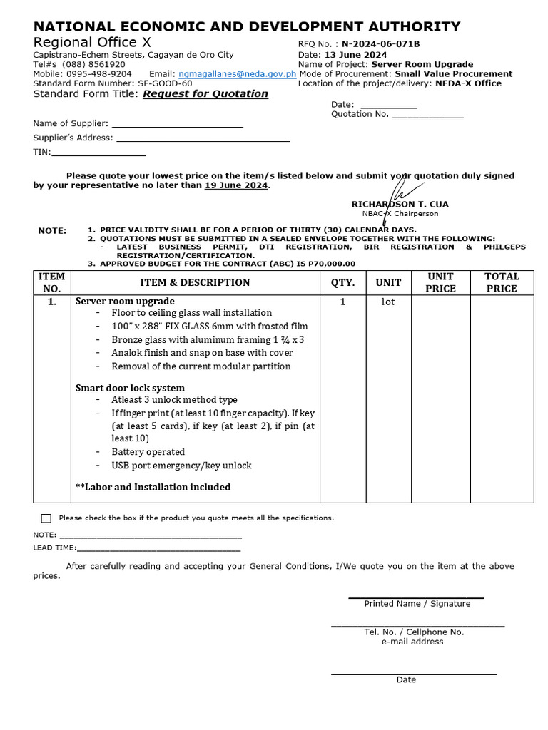 Regional Office X RFQ No. : N-2024-06-071B