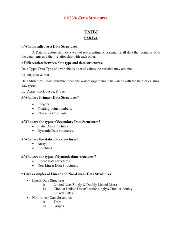 1. What is called as a Data Structure?