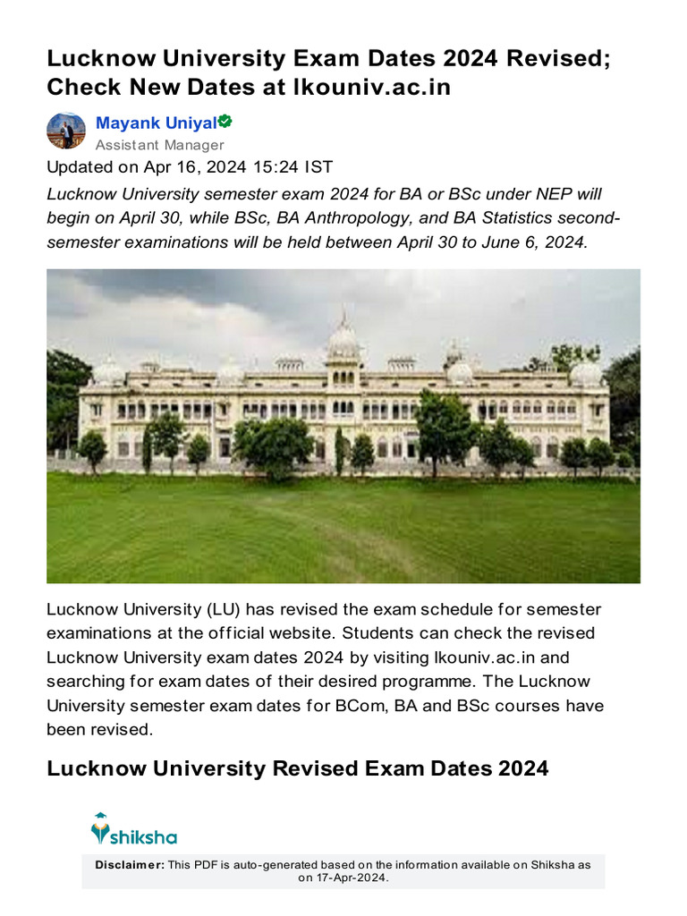 Disclaim e r: This PDF is auto -generated based o n the info rmatio n available o n Shiksha as