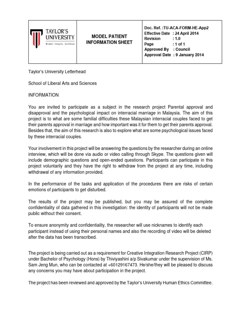 You are invited to participate as a subject in the research project Parental approval and