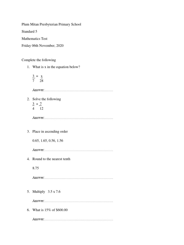 Mathematics Test