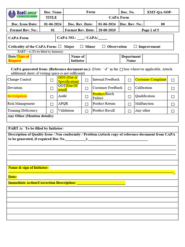 CAPA Form CAPA NO.: ____/ CAPA/_____