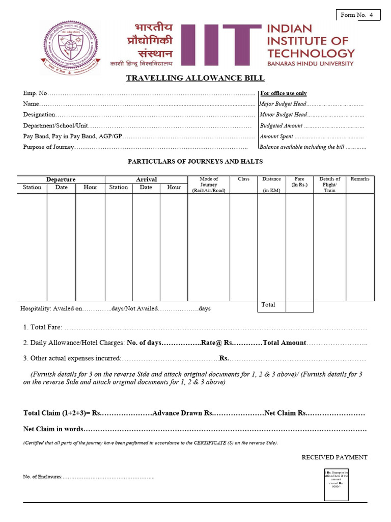 Total Claim (1+2+3)= Rs.…………………Advance Drawn Rs.…………………Net Claim Rs.……………………