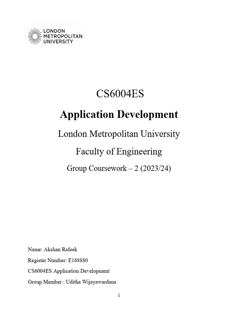 CS6004ES –Application Development Group Coursework - 2