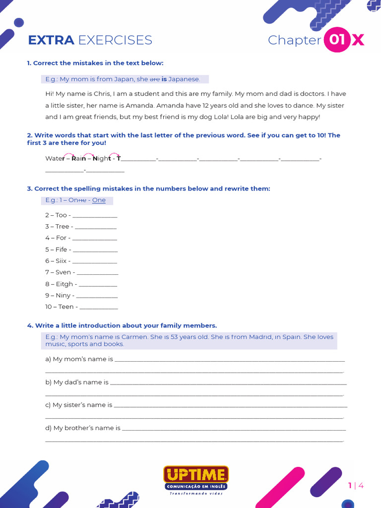 E.g.: My mom’s name is Carmen. She is 53 years old. She is from Madrid, in Spain. She loves