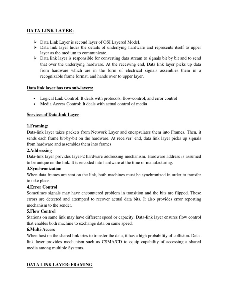 sends each frame bit-by-bit on the hardware. At receiver’ end, data link layer picks up signals