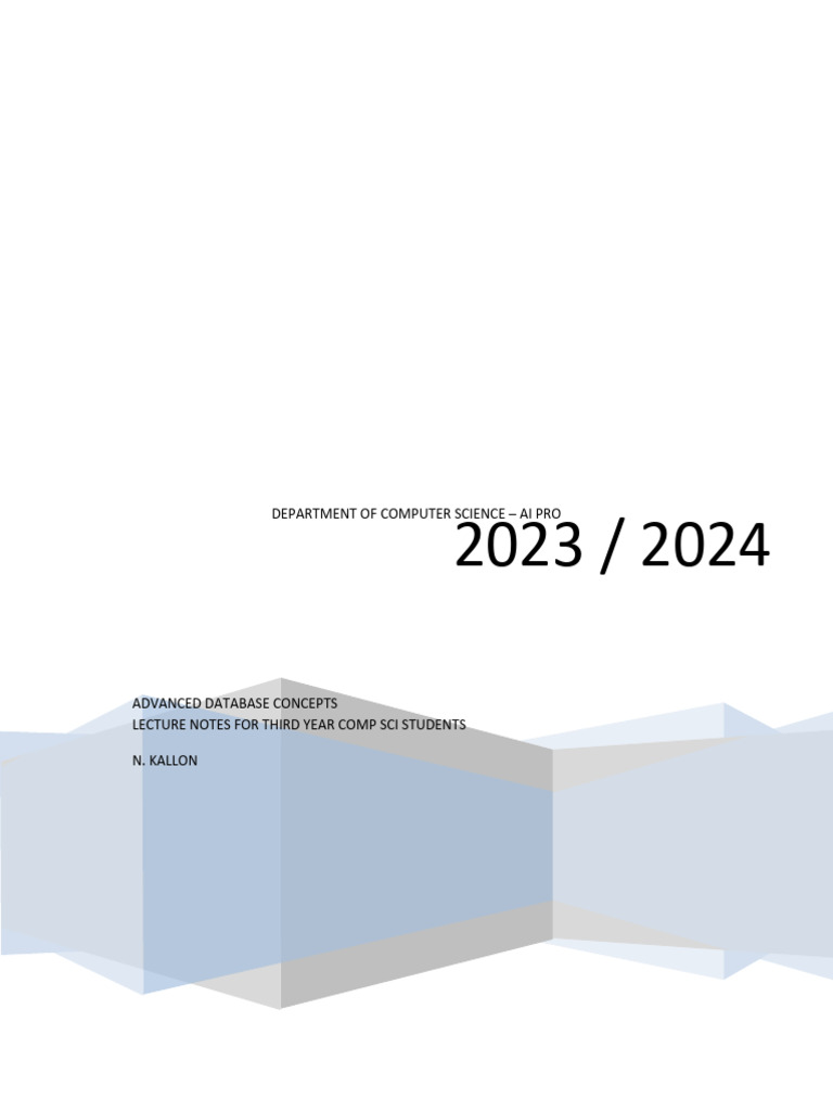 CS 301 ADVANCED DATABASE CONCEPTS LECTURE NOTES