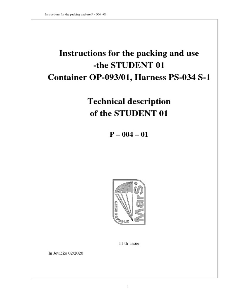 The STUDENT 01 Container with the harness is designed for a basic training of parachutists,