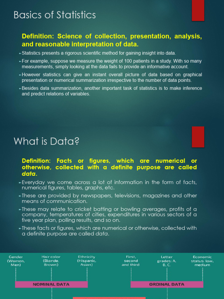 ►Statistics presents a rigorous scientific method for gaining insight into data.