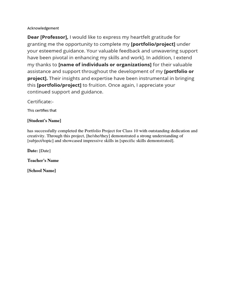 has successfully completed the Portfolio Project for Class 10 with outstanding dedication and