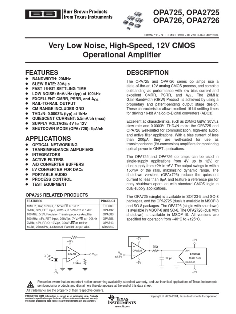 OPA725 RELATED PRODUCTS The OPA725 (single) is available in SOT23-5 and SO-8