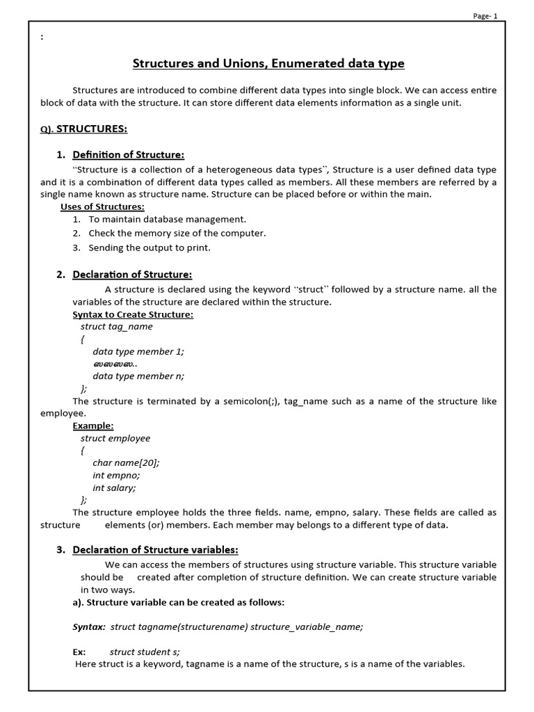 Structure is a collection of a heterogeneous data types , Structure is a user defined data type
