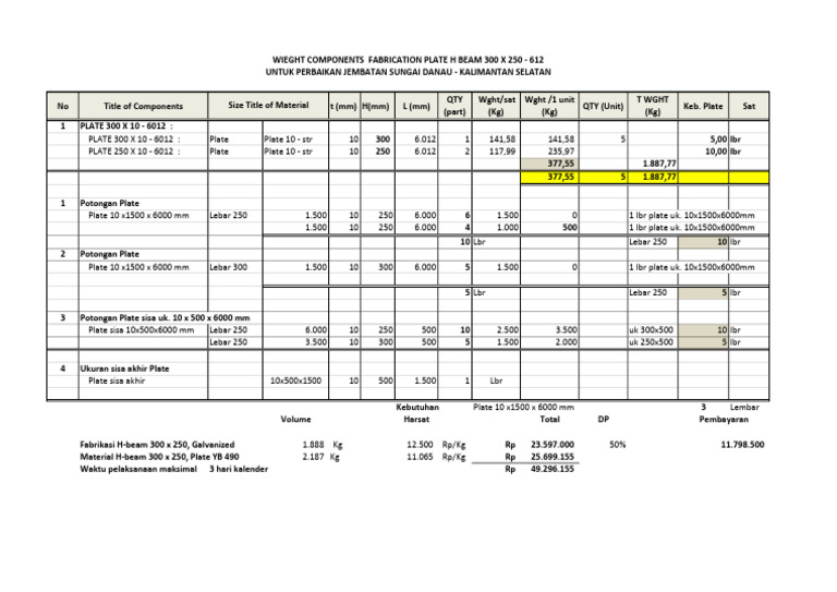 WIEGHT COMPONENTS FABRICATION PLATE H BEAM 300 X 250 - 612
