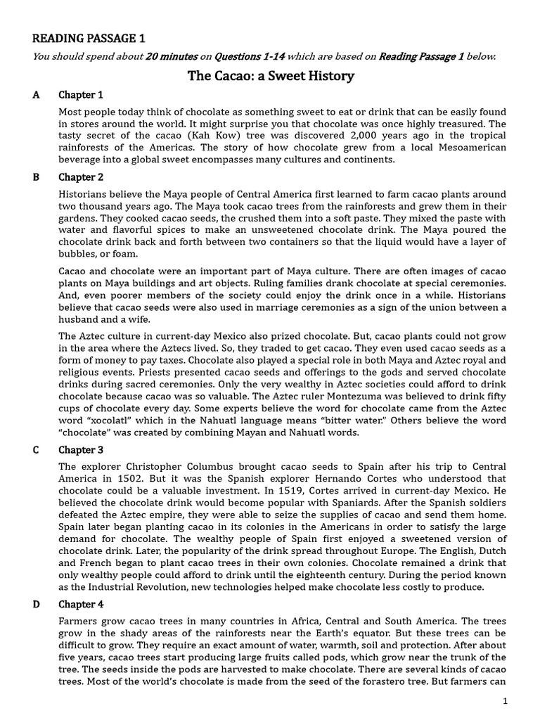 You should spend about 20 minutes on Questions 1-14 which are based on Reading Passage 1 below.