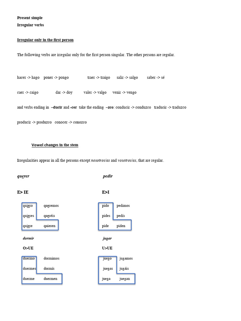 Irregularities appear in all the persons except nosotros/as and vosotros/as, that are regular.