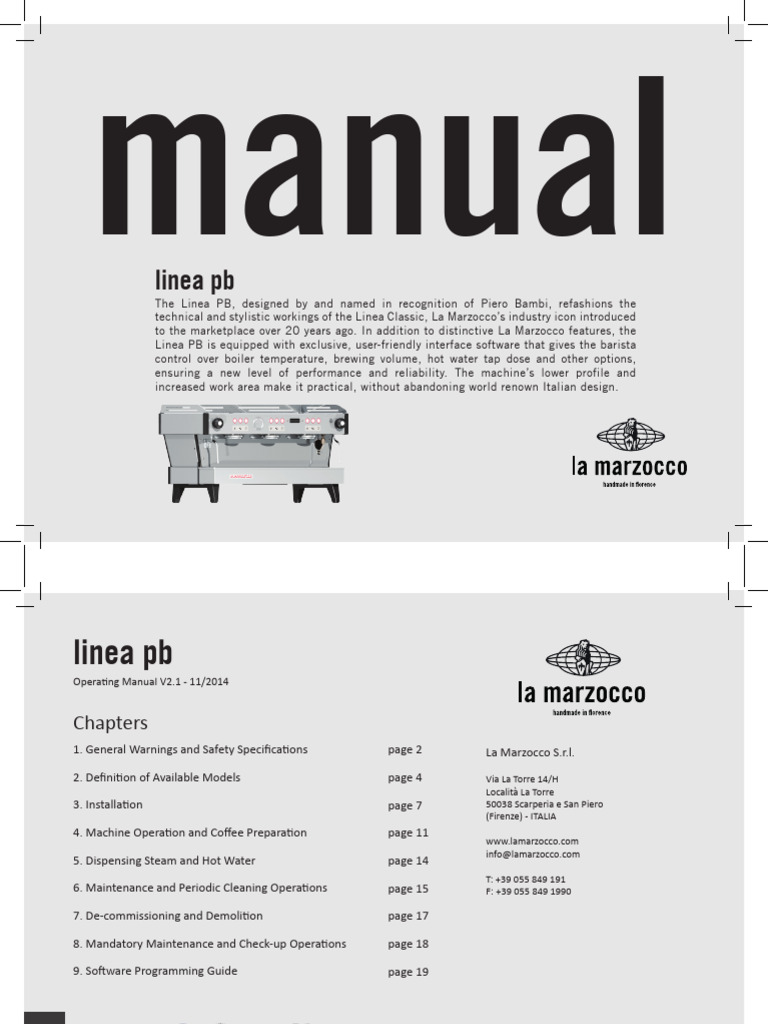 1. General Warnings and Safety Specifications page 2 La Marzocco S.r.l.
