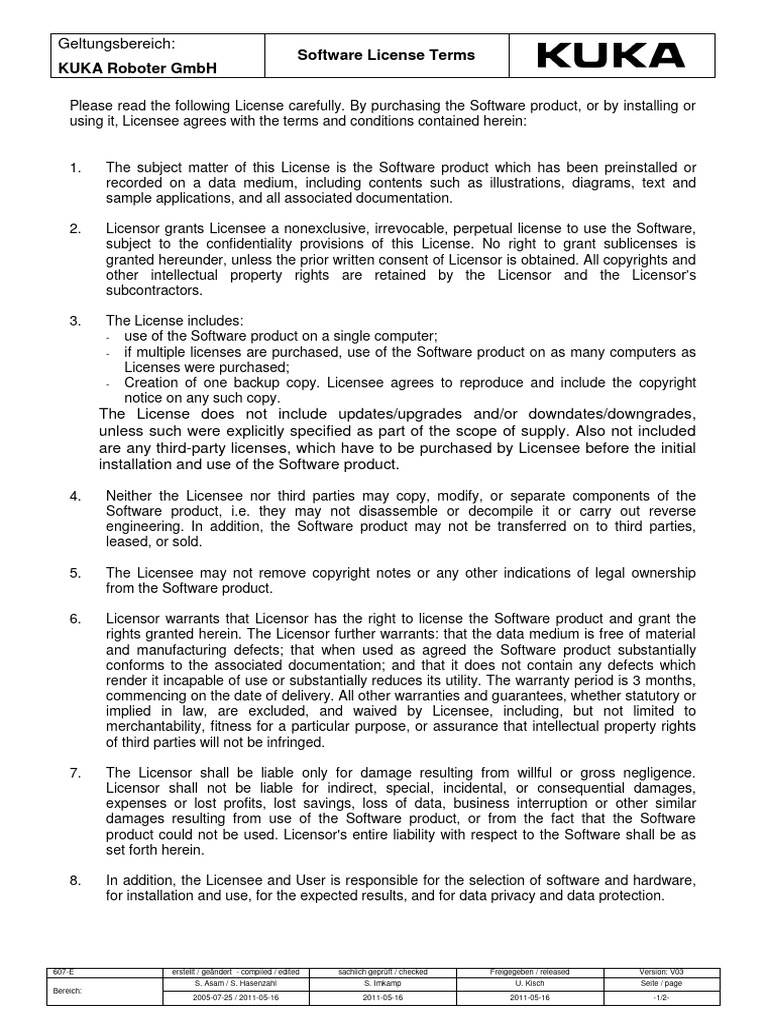 18. Any waiver of strict compliance with this License or KUKA Roboter GmbH’s General Terms of