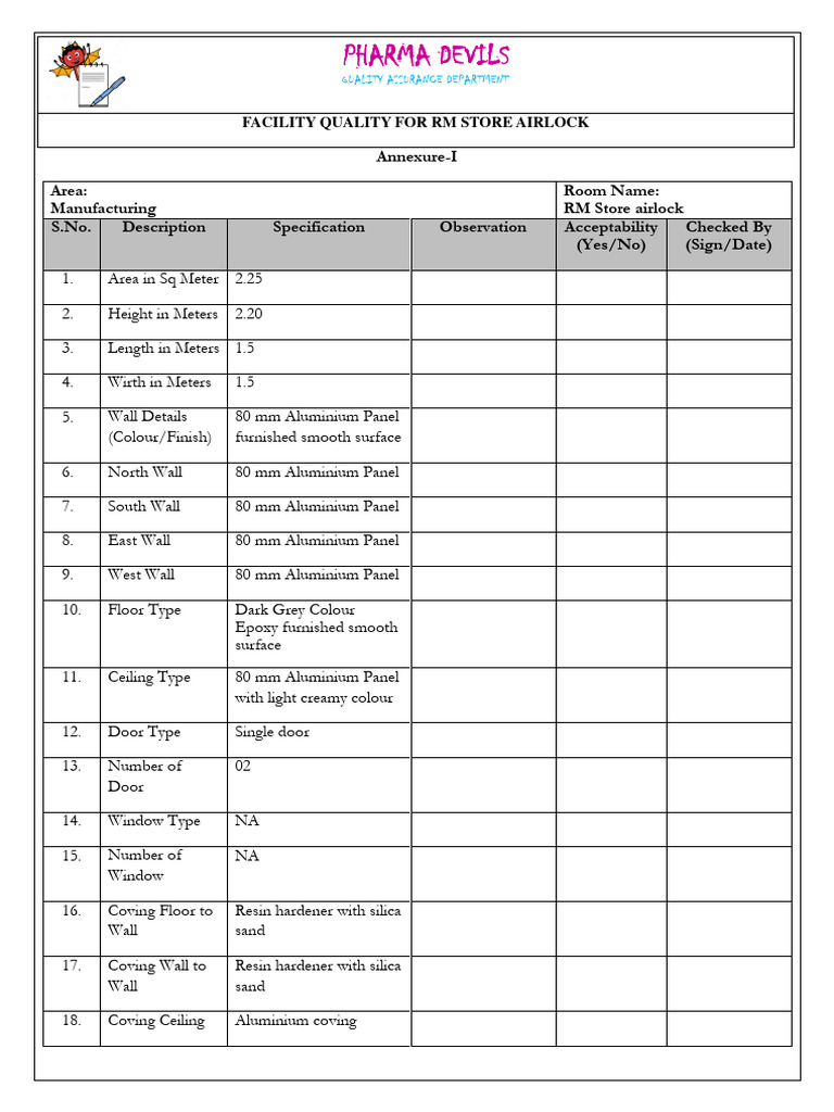 FACILITY QUALITY FOR RM STORE AIRLOCK