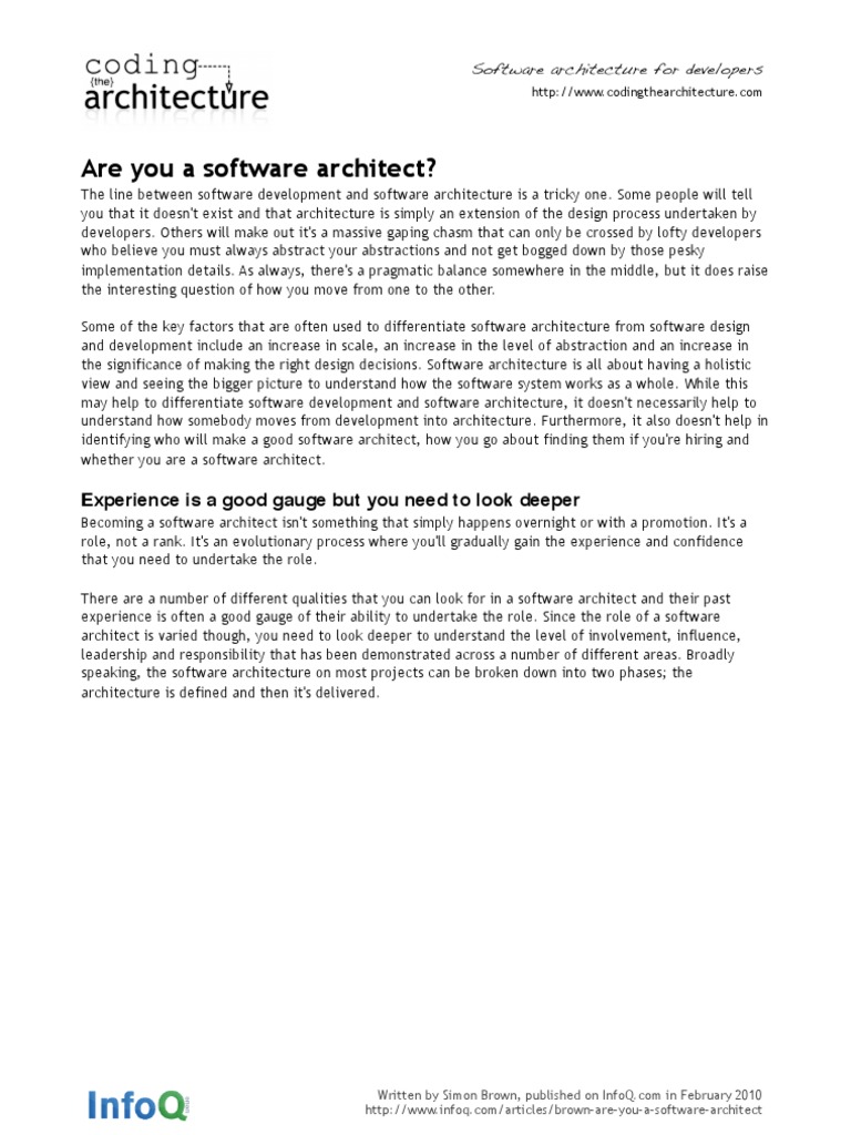 Written by Simon Brown, published on InfoQ.com in February 2010 http://www.infoq.com/articles/brown-are-you-a-software-architect
