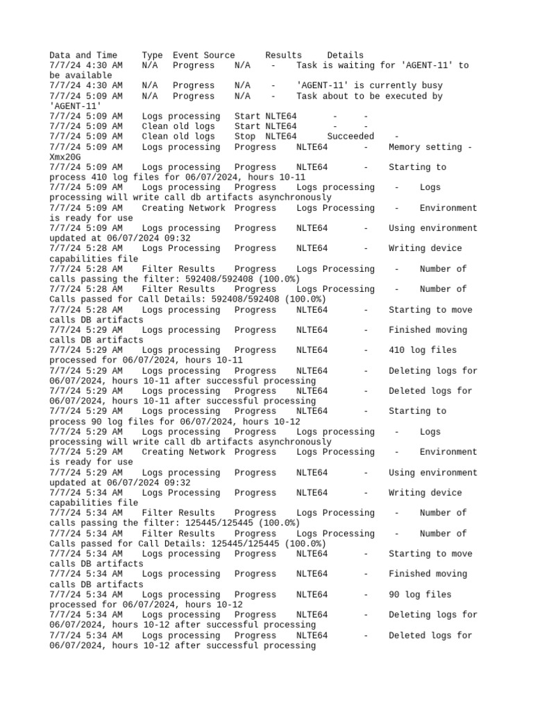 7/7/24 5:29 AM Logs processing Progress NLTE64 - Deleted logs for