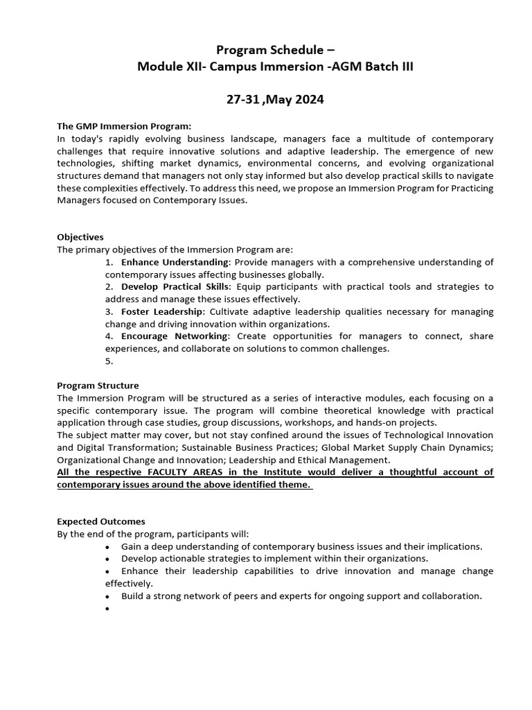 The Immersion Program will be structured as a series of interactive modules, each focusing on a