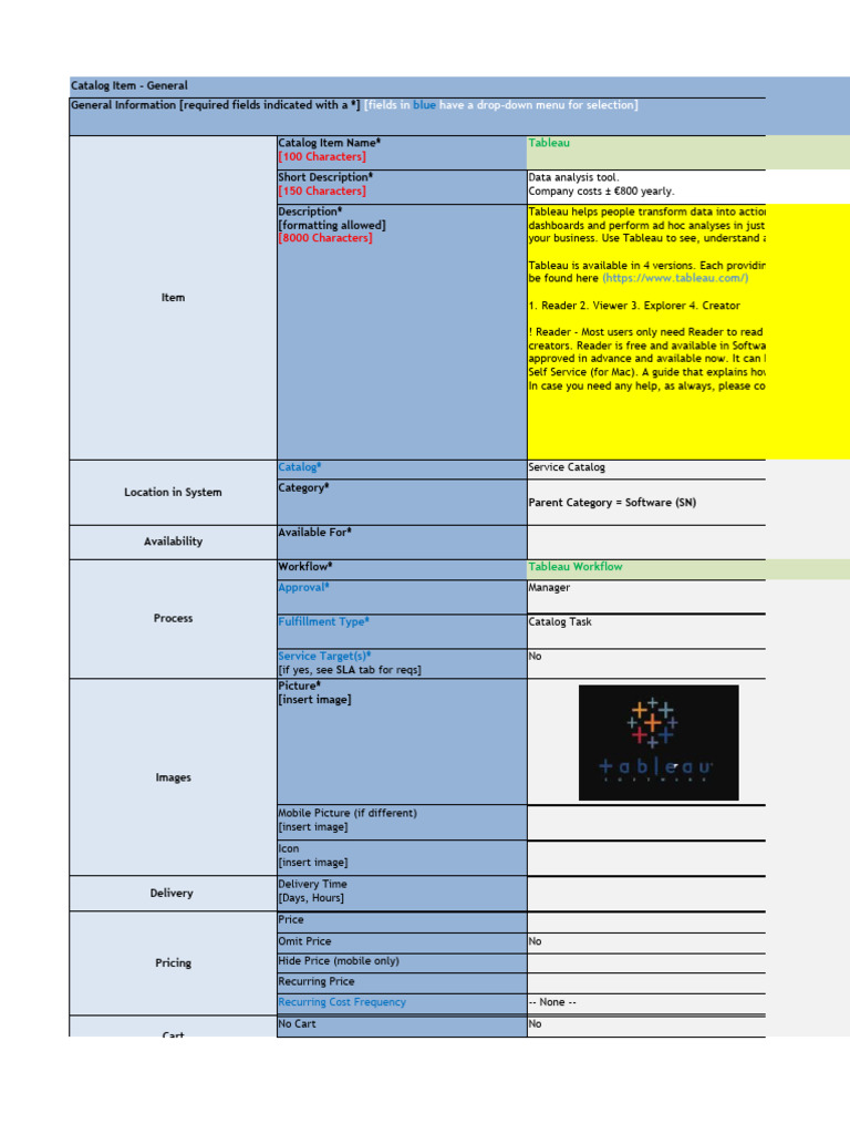 WORKFLOW [fields in blue have a drop-down menu for selection]