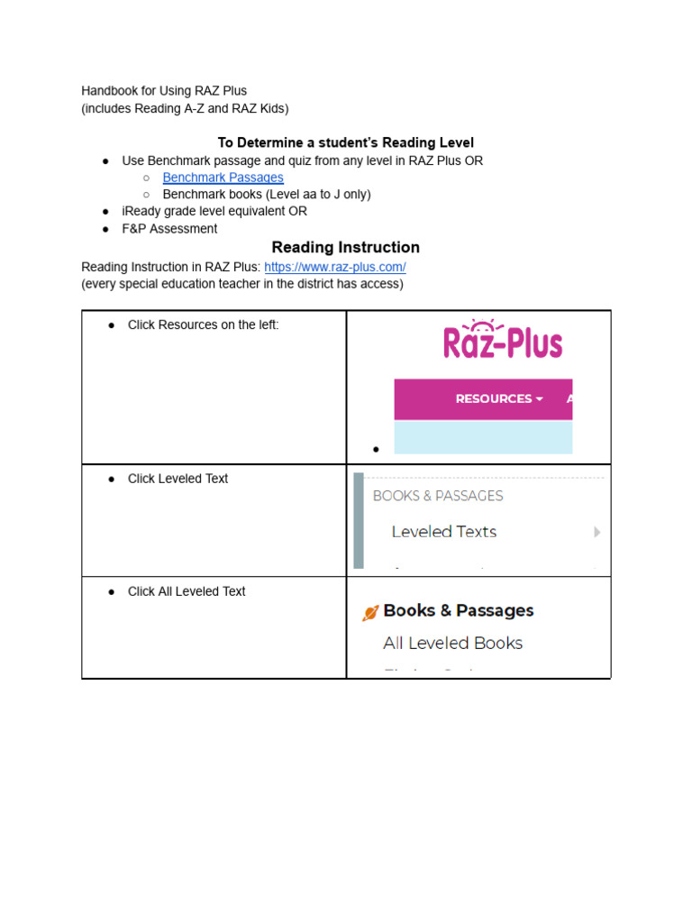 Handbook for Using RAZ Plus