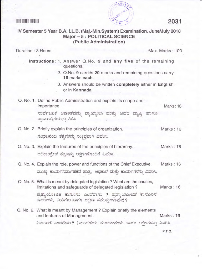 lV Semester 5 Year B.A. LL.B. (Maj.-[Link]) Examination, June/July 2018