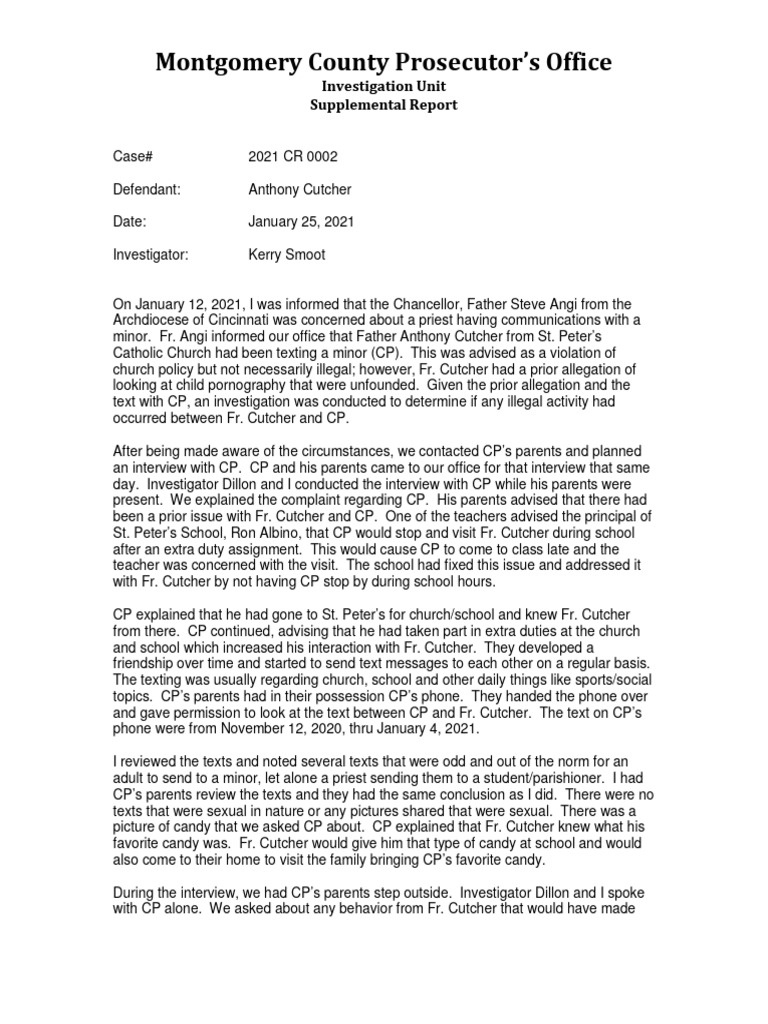 On January 20, 2021, Investigator Dillon and I met with Fr. Cutcher regarding getting