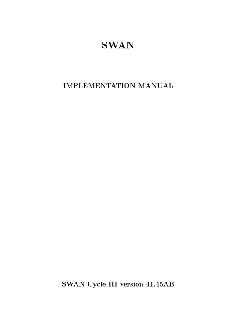 This Implementation Manual is a part of the total material to implement the SWAN wave