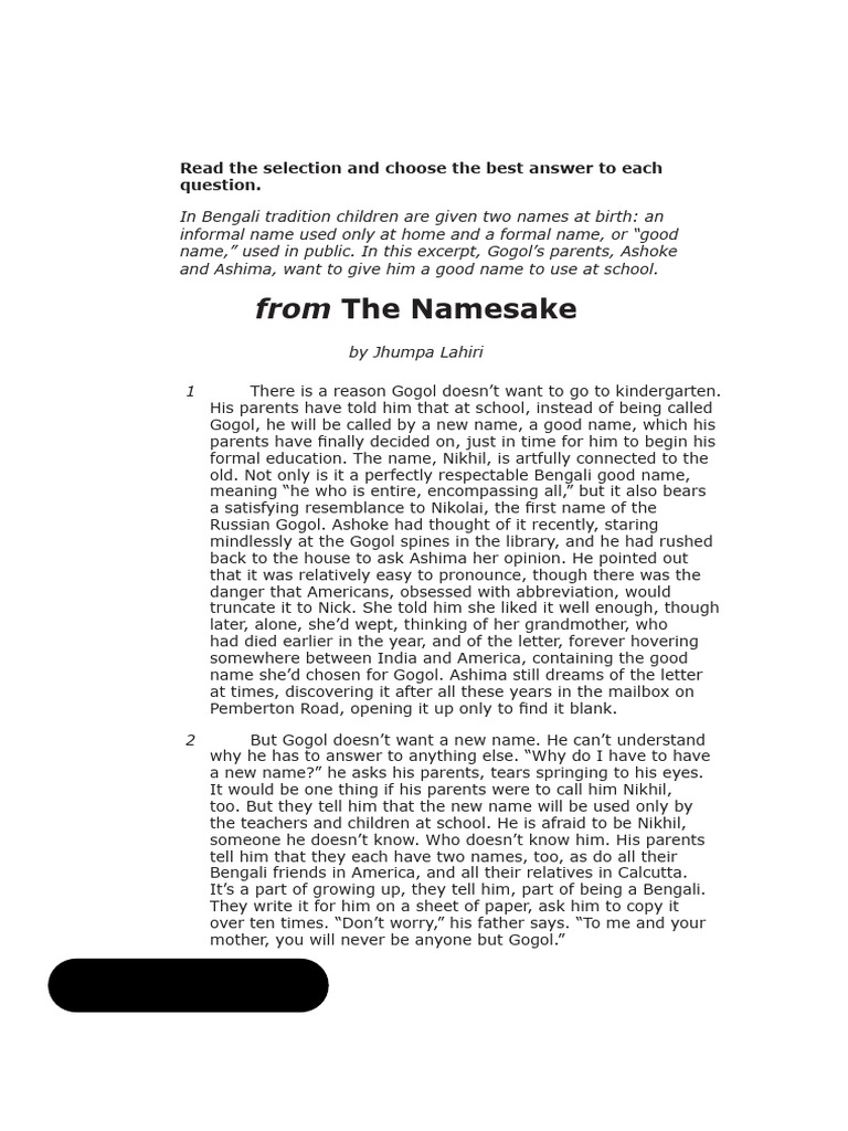 name,” used in public. In this excerpt, Gogol’s parents, Ashoke