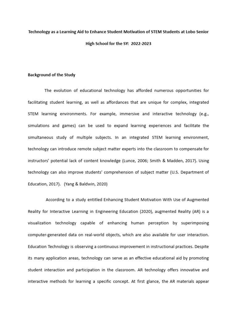 Technology as a Learning Aid to Enhance Student Motivation of STEM Students at Lobo Senior