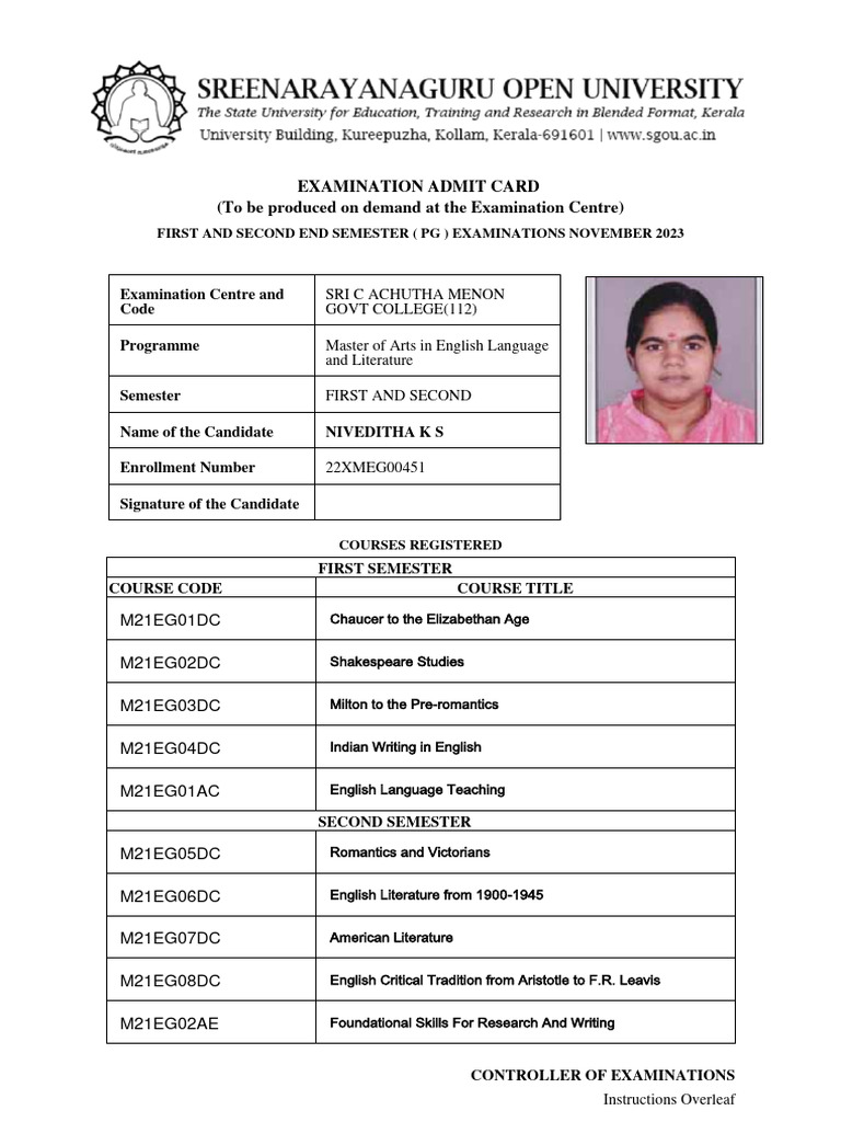 • Candidates must carry original EXAMINATION ADMIT CARD and a valid