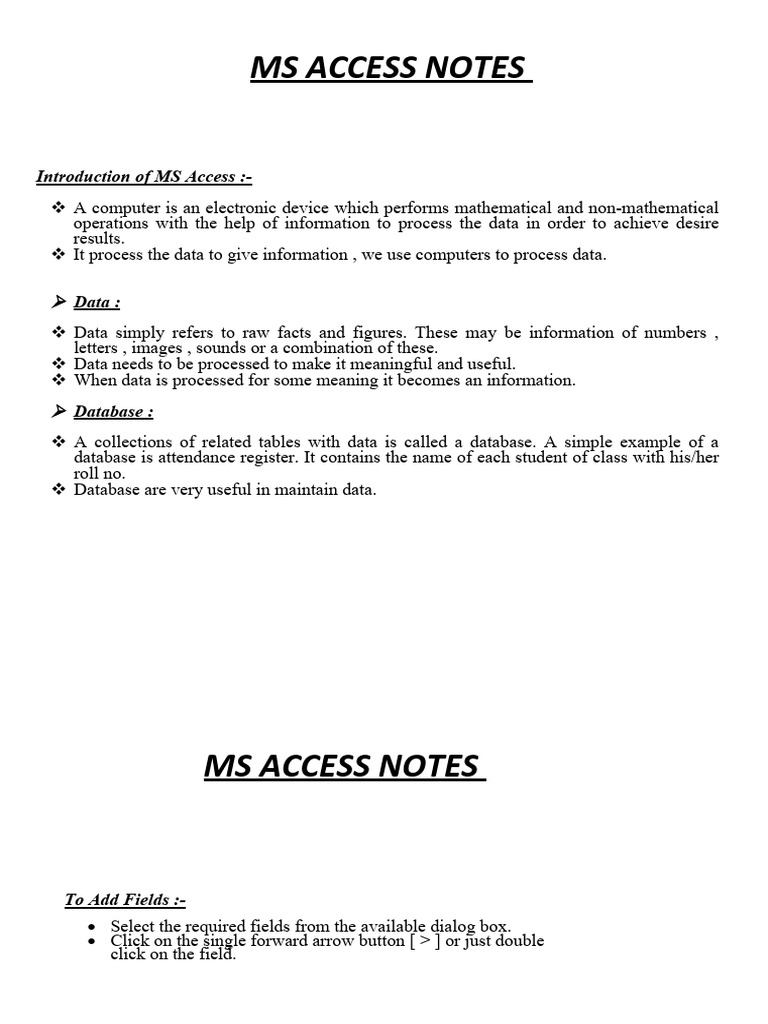 MS ACCESS NOTES