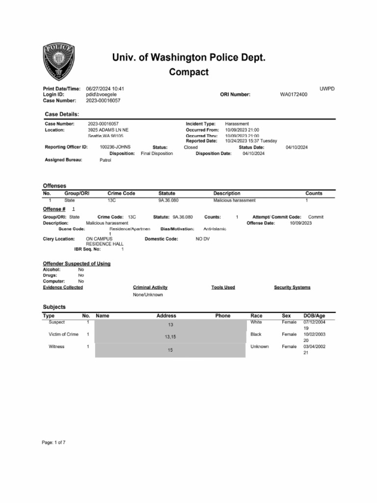 Page: tof?Univ. of Washington Police Dept.