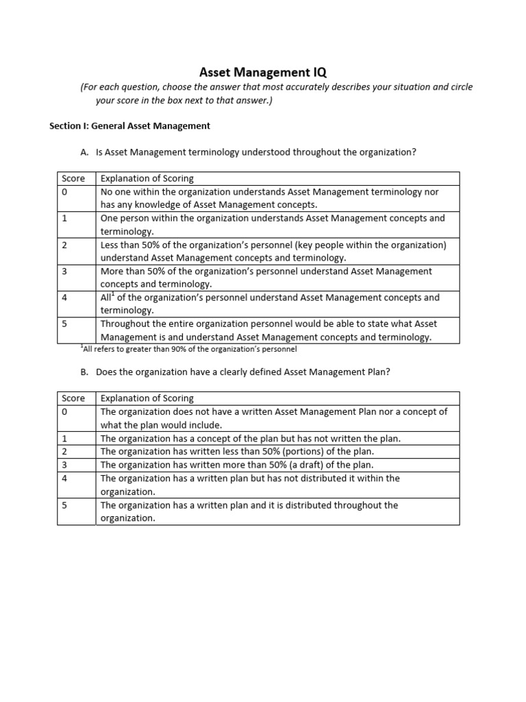 0 The organization does not have a written Asset Management Plan nor a concept of