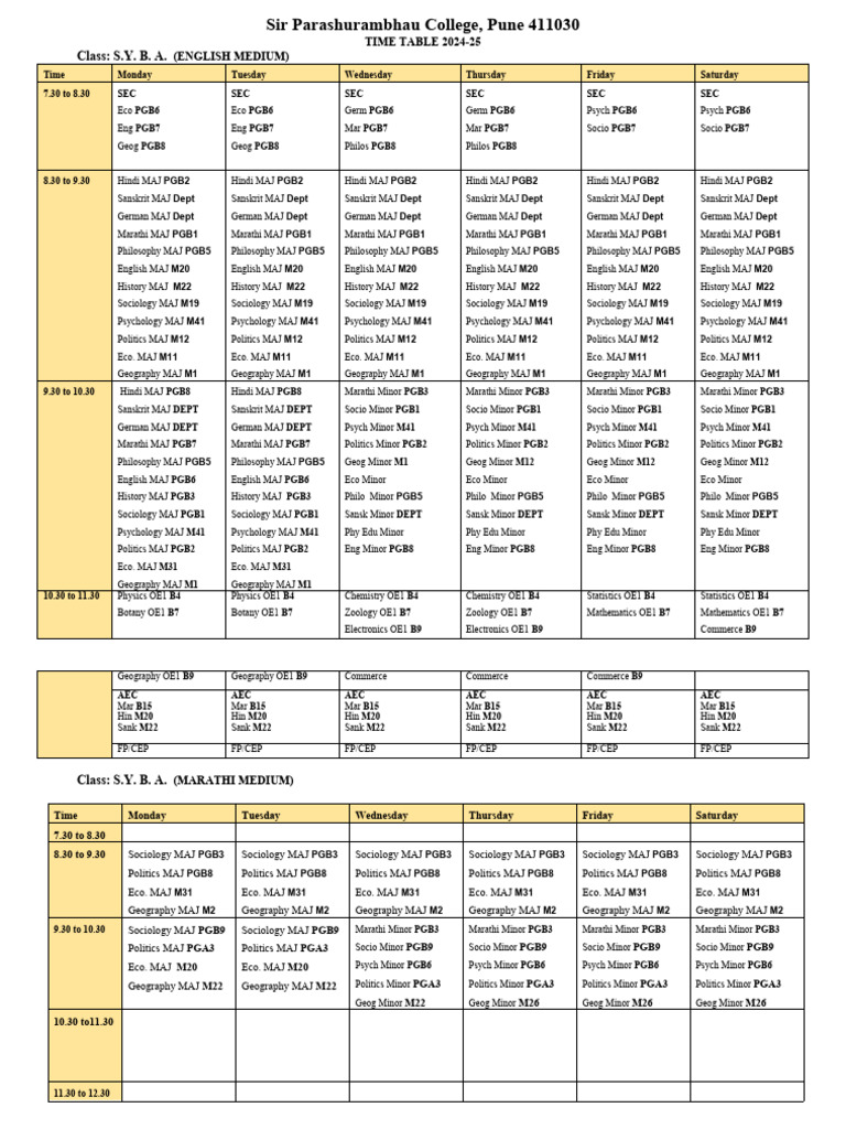 9.30 to 10.30 Sociology MAJ PGB9 Sociology MAJ PGB9 Marathi Minor PGB3 Marathi Minor PGB3 Marathi Minor PGB3 Marathi Minor PGB3