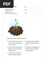 1. Which part of the plant absorbs water and nutrients from the soil? a) Leaves b) Roots c) Stem