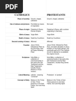 different Christian faiths such as Lutheranism, Methodism, Baptist, Catholicism and