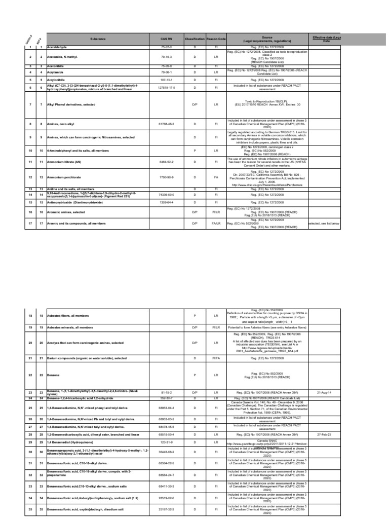 Substances listed are proposed for REACH Annex XVII
