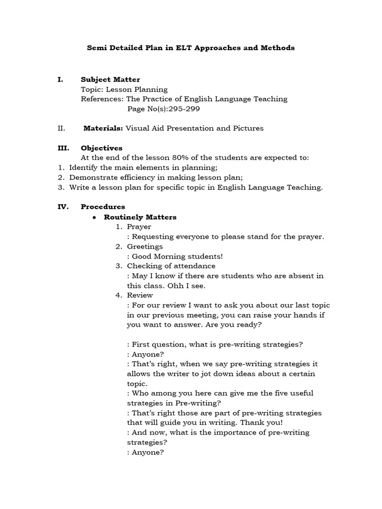 3. Write a lesson plan for specific topic in English Language Teaching.