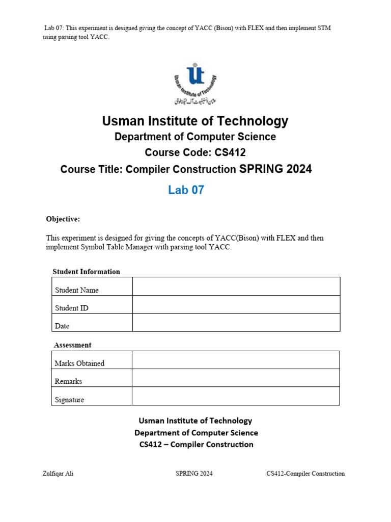 Zulfiqar Ali SPRING 2024 CS412-Compiler Construction