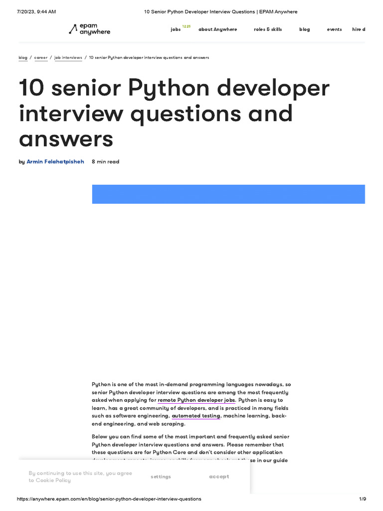 7/20/23, 9:44 AM 10 Senior Python Developer Interview Questions | EPAM Anywhere