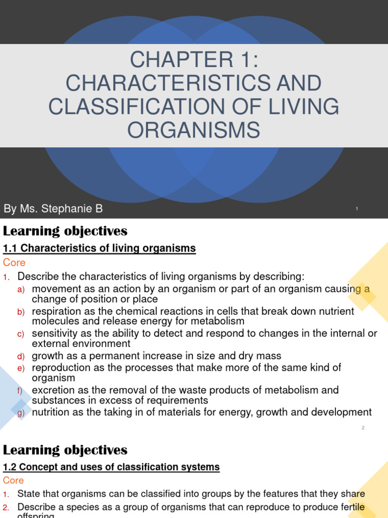 1.1 Characteristics of living organisms