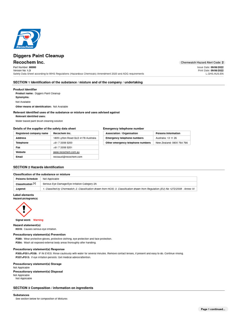 Version No: 1.3 Print Date: 09/06/2022
